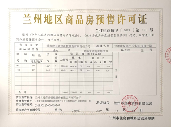 近日,甘肅建投地產(chǎn)·金悅府項(xiàng)目一期成功取得《商品房預(yù)售許可證》,為項(xiàng)目后續(xù)工作的開展奠定了堅(jiān)實(shí)基礎(chǔ)。
