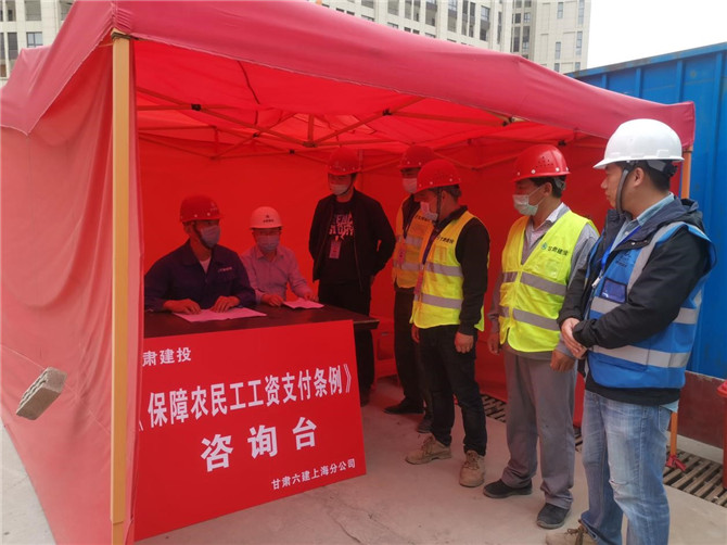 為確?!侗U限r(nóng)民工工資支付條例》宣傳貫徹到位,維護(hù)農(nóng)名工合法權(quán)益和社會和諧穩(wěn)定,5月1日至5月5日,甘建投(上海)房地產(chǎn)有限公司與施工總包單位甘肅六建一同開展《保障農(nóng)民工工資支付條例》學(xué)習(xí)宣傳活動。
