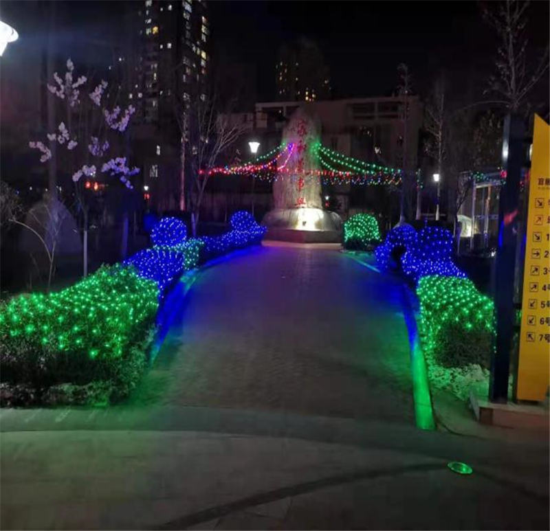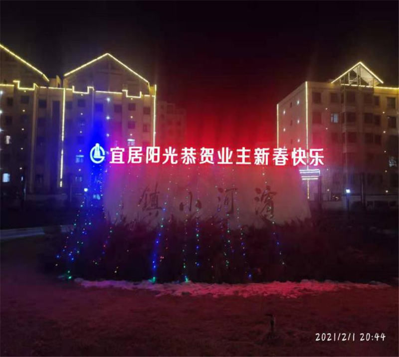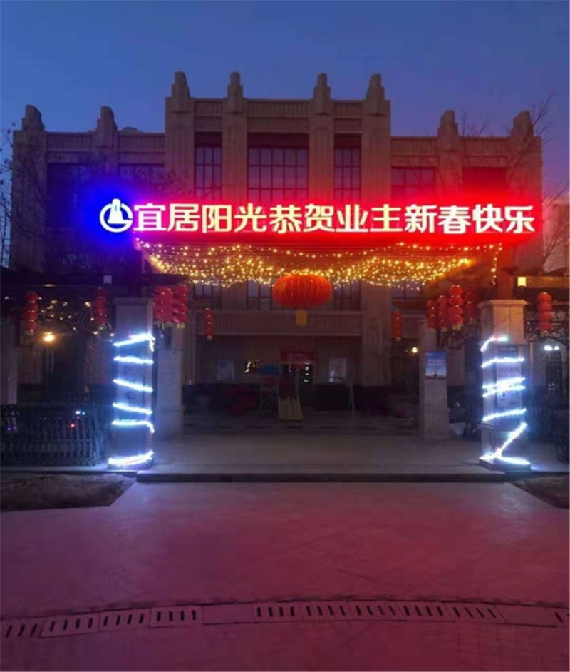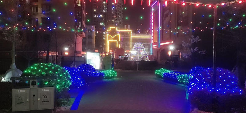 本次春節(jié)園區(qū)裝飾工作物業(yè)公司結(jié)合托管7個(gè)小區(qū)的實(shí)際情況,營(yíng)造紅色“年味”,在主出入口以亮化字“宜居陽(yáng)光恭賀業(yè)主新年快樂(lè)”為重點(diǎn),在小區(qū)主干道及道路兩側(cè)以特色燈飾裝飾做烘托,業(yè)主目之所及之處都是一個(gè)個(gè)飛上屋檐的大紅燈籠、一幅幅貼上墻壁的對(duì)聯(lián)、一顆顆開(kāi)滿“鮮花”的樹(shù)木,夜幕降臨整個(gè)小區(qū)更是火樹(shù)銀花,星光點(diǎn)點(diǎn)充滿了節(jié)日的氣氛,多層次、立體化展現(xiàn)春節(jié)風(fēng)俗,達(dá)到“賞心悅目”的節(jié)日景觀。