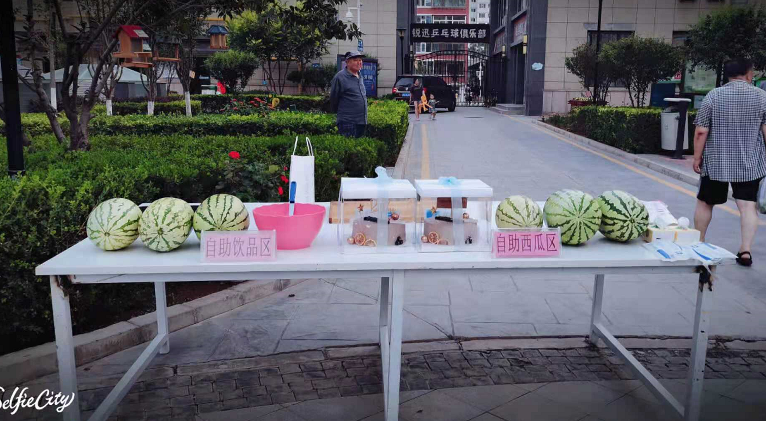 一塊幕布、一個投影儀,當酷夏的夜晚被露天電影的屏幕點亮時,業(yè)主們紛紛進入觀影場地,物業(yè)工作人員隨即將切好的西瓜、蛋糕以及精心熬制的解暑飲料奉上,還時不時向前來觀影的業(yè)主與小朋友們熱情打招呼,在忙碌和歡聲笑聲中與業(yè)主們一起看了一場露天電影,想必這場活動對大人是童年的回歸,對小朋友則是愉快的體驗。