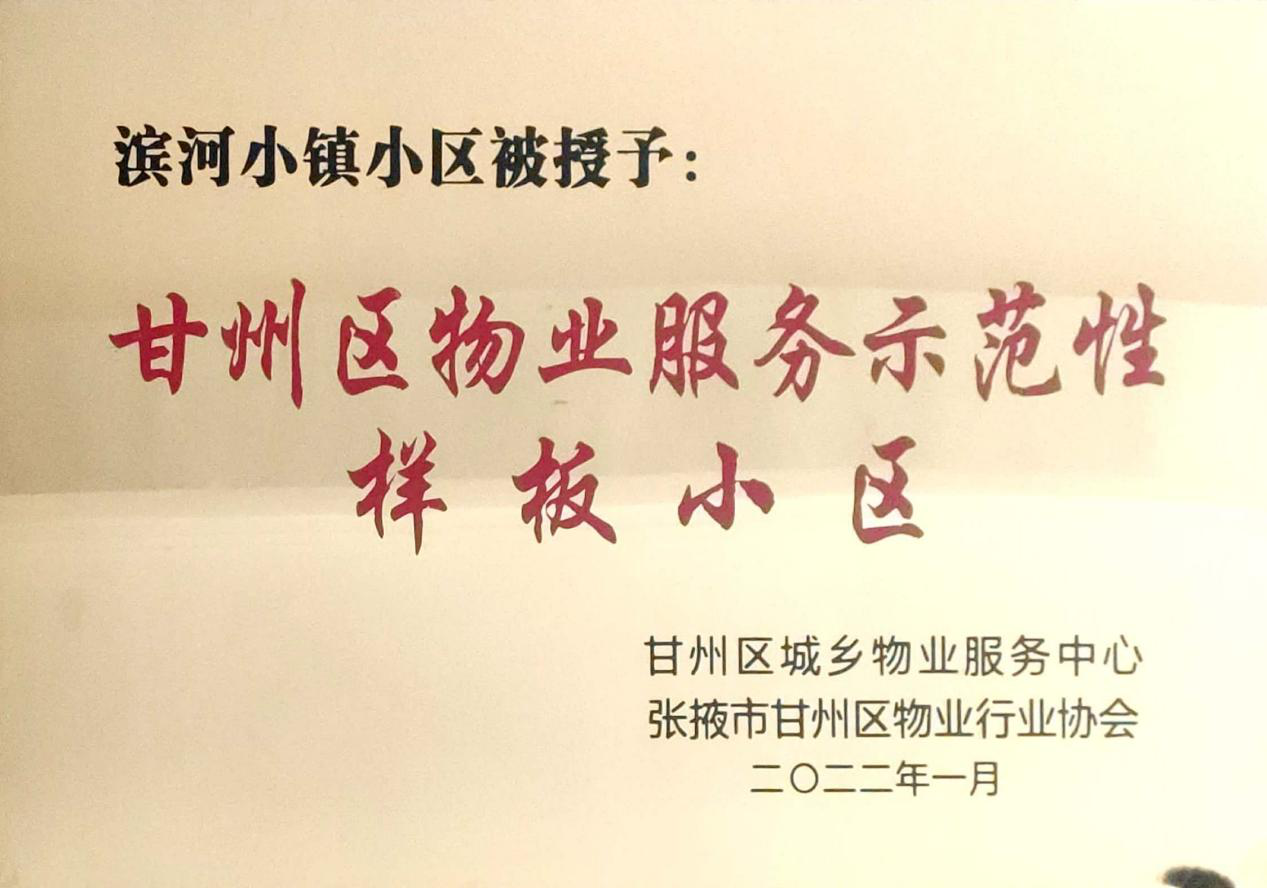 1月25日,從張掖市甘州區(qū)城鄉(xiāng)物業(yè)服務(wù)中心召開(kāi)的2021年終總結(jié)暨表彰大會(huì)傳來(lái)喜訊,甘肅宜居陽(yáng)光物業(yè)管理有限公司管理的濱河小鎮(zhèn)小區(qū)被授予“甘州區(qū)物業(yè)服務(wù)示范性樣板小區(qū)”。