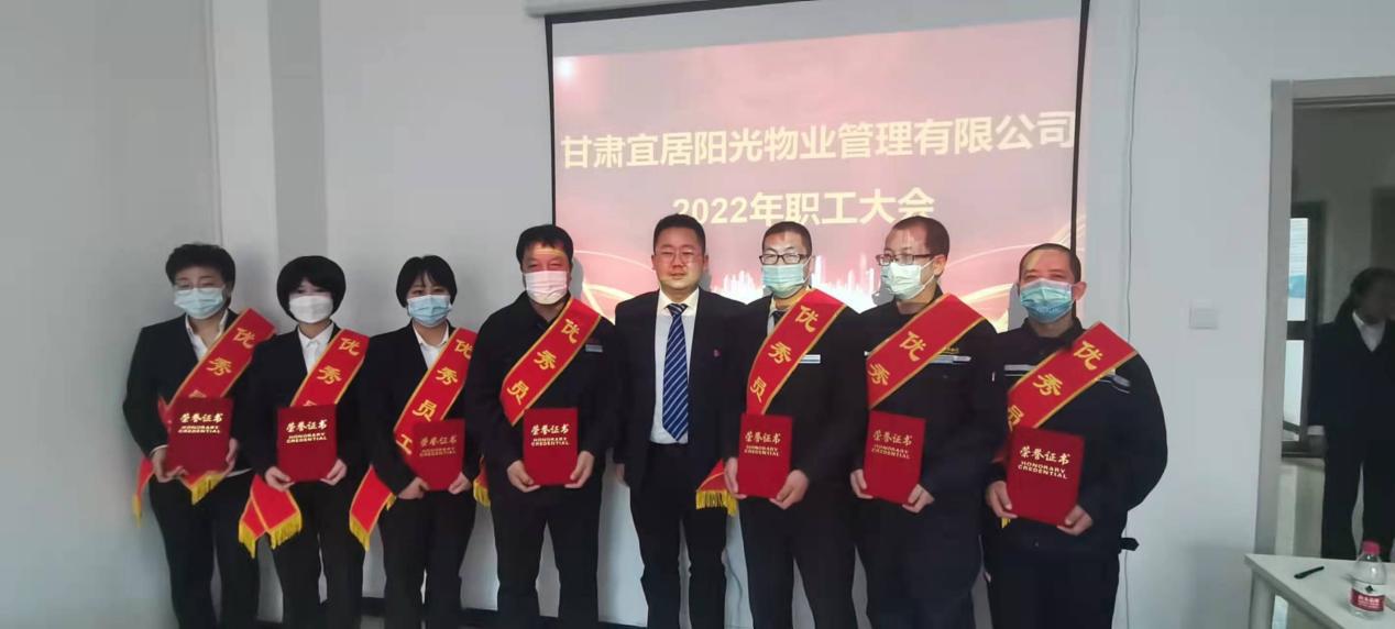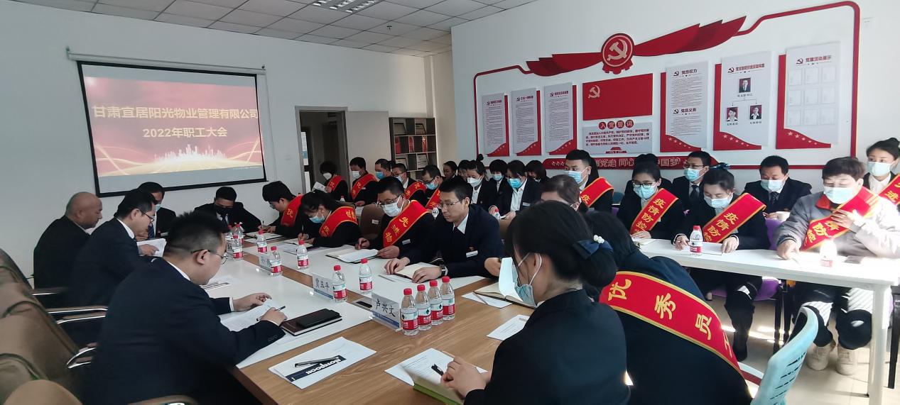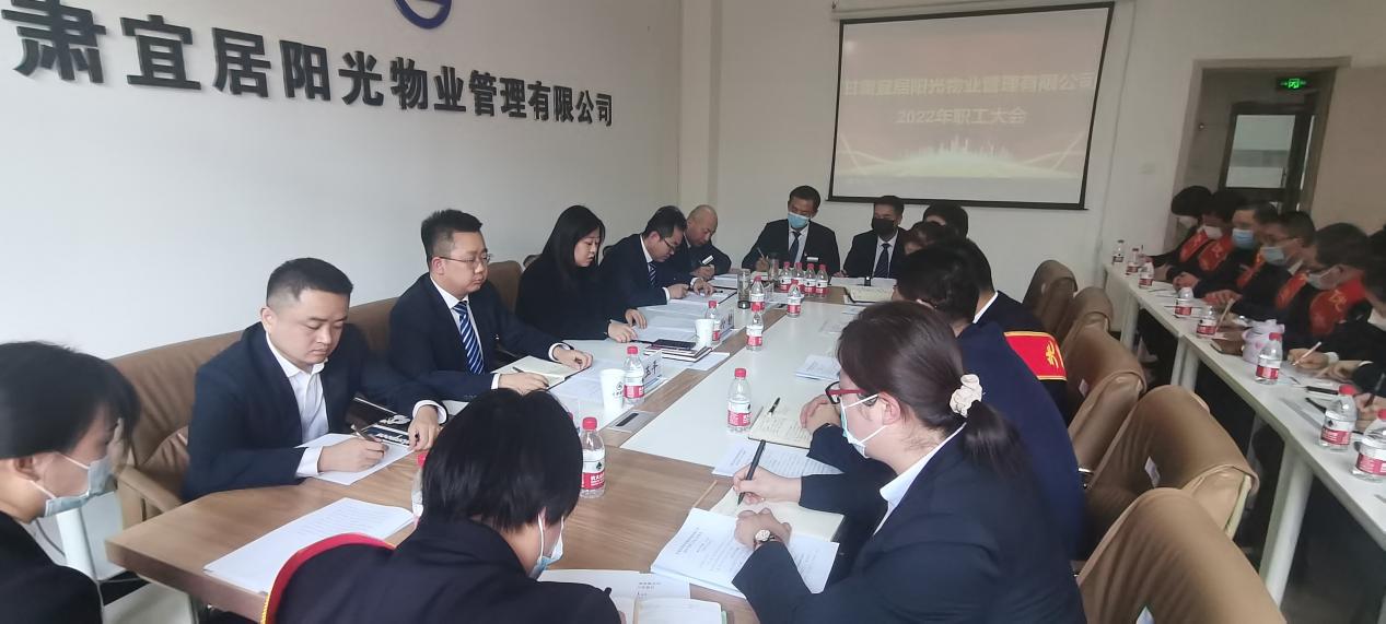 2月24日下午,甘肅宜居陽光物業(yè)管理有限公司召開職工大會(huì),物業(yè)公司班子成員、物業(yè)公司機(jī)關(guān)全體人員、各物業(yè)中心主任及受表彰人員代表共40余人參加會(huì)議。置業(yè)公司紀(jì)委書記、工會(huì)主席、監(jiān)事會(huì)主席孫靜到會(huì)指導(dǎo)并做講話。