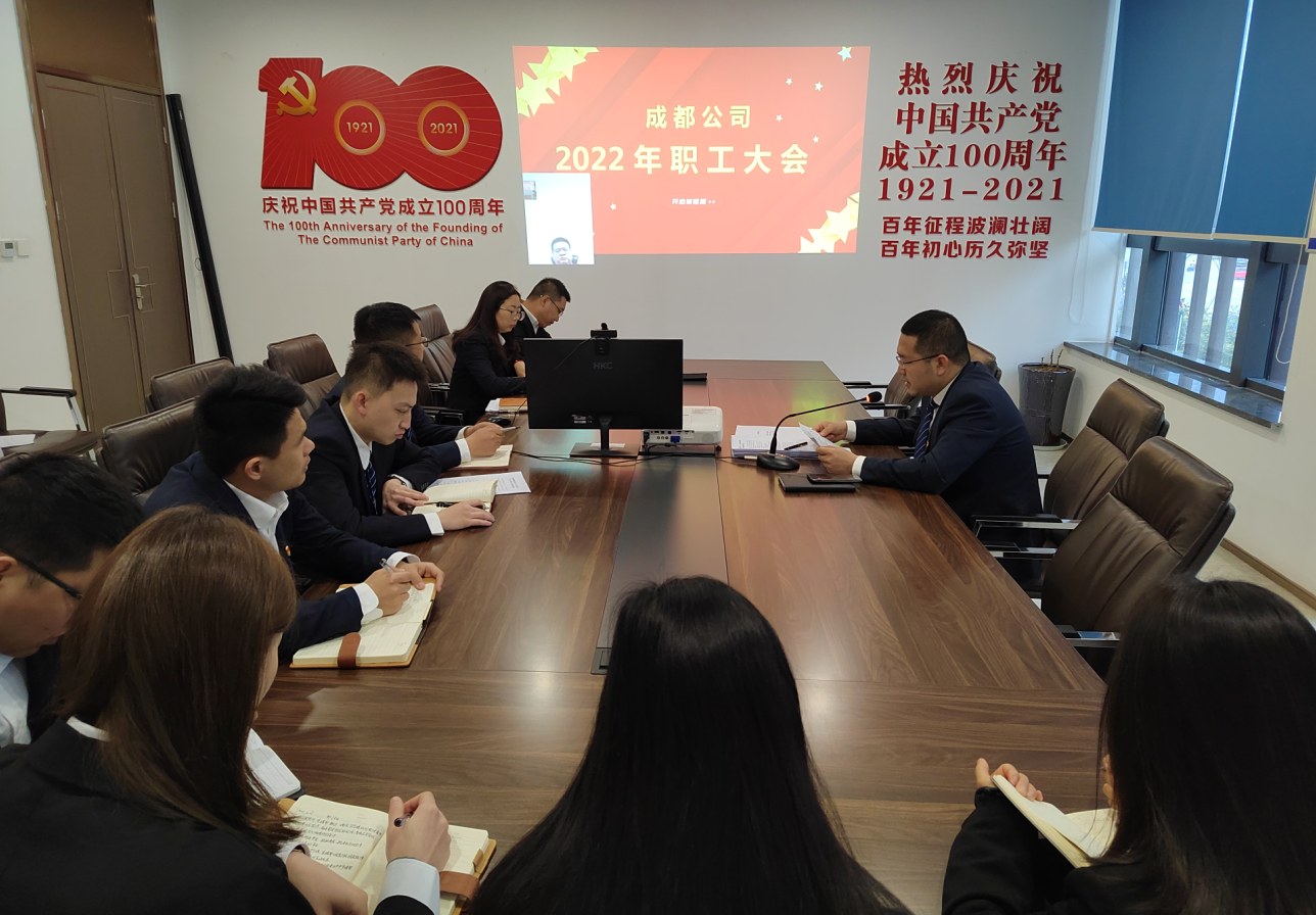 3月2日,成都公司召開2022年職工大會,置業(yè)公司黨委委員、副總經(jīng)理馬臻奇通過視頻形式出席會議,成都公司全體職工參會。
