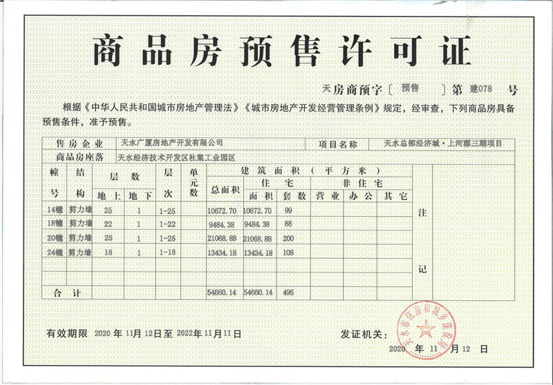 近日,天水上河郡三期項目取得商品房預(yù)售許可證,這是繼甘肅建投天水中心、上尚宅二期項目之后在手續(xù)報建上的又一重大突破,同時也標(biāo)志著天水三個項目建設(shè)階段手續(xù)報建工作的圓滿完成;天水上河郡三期項目商品房預(yù)售許可證的取得為該項目11月22日開盤奠定了堅實基礎(chǔ)!同時也預(yù)示著天水上河郡三期預(yù)售工作即將全面拉開帷幕。