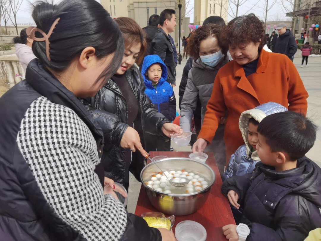 “您好!請(qǐng)品嘗我們?yōu)槟鷾?zhǔn)備的湯圓,祝您及家人元宵節(jié)快樂!”物業(yè)天水分公司所屬上尚宅和上河郡物業(yè)中心客服人員給每一位走進(jìn)來的業(yè)主一一送上一碗熱氣騰騰的煮元宵和美好的祝福。