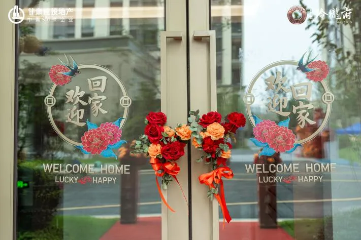 經(jīng)過盛裝布置,園區(qū)沿途一路鋪裝紅毯,枝頭掛滿紅燈籠,單元門口點綴燦爛花束,隨處可見“歡迎回家”的標語,“回家”的暖流直抵人心。
