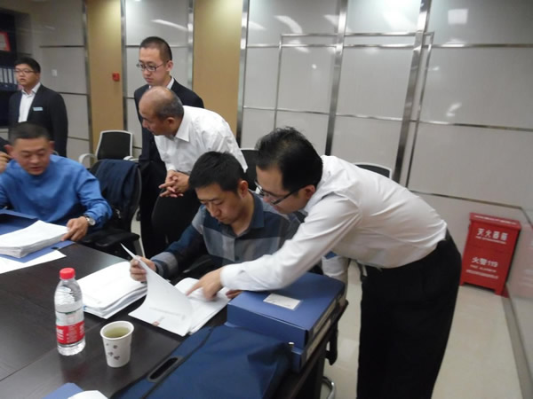 (檢查小組在檢查文檔資料)
