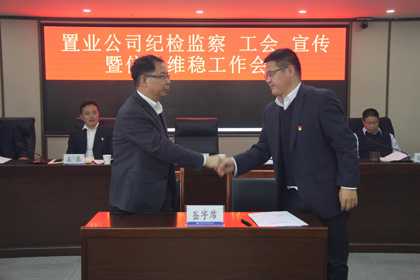 會(huì)議對(duì)2019年紀(jì)檢監(jiān)察、工會(huì)、宣傳、信訪維穩(wěn)工作進(jìn)行安排部署,公司黨委書(shū)記、總經(jīng)理李?yuàn)^旭分別與各單位簽訂《2019年黨建工作目標(biāo)責(zé)任書(shū)》、《2019年信訪目標(biāo)責(zé)任書(shū)》、《2019年黨風(fēng)廉政目標(biāo)責(zé)任書(shū)》。